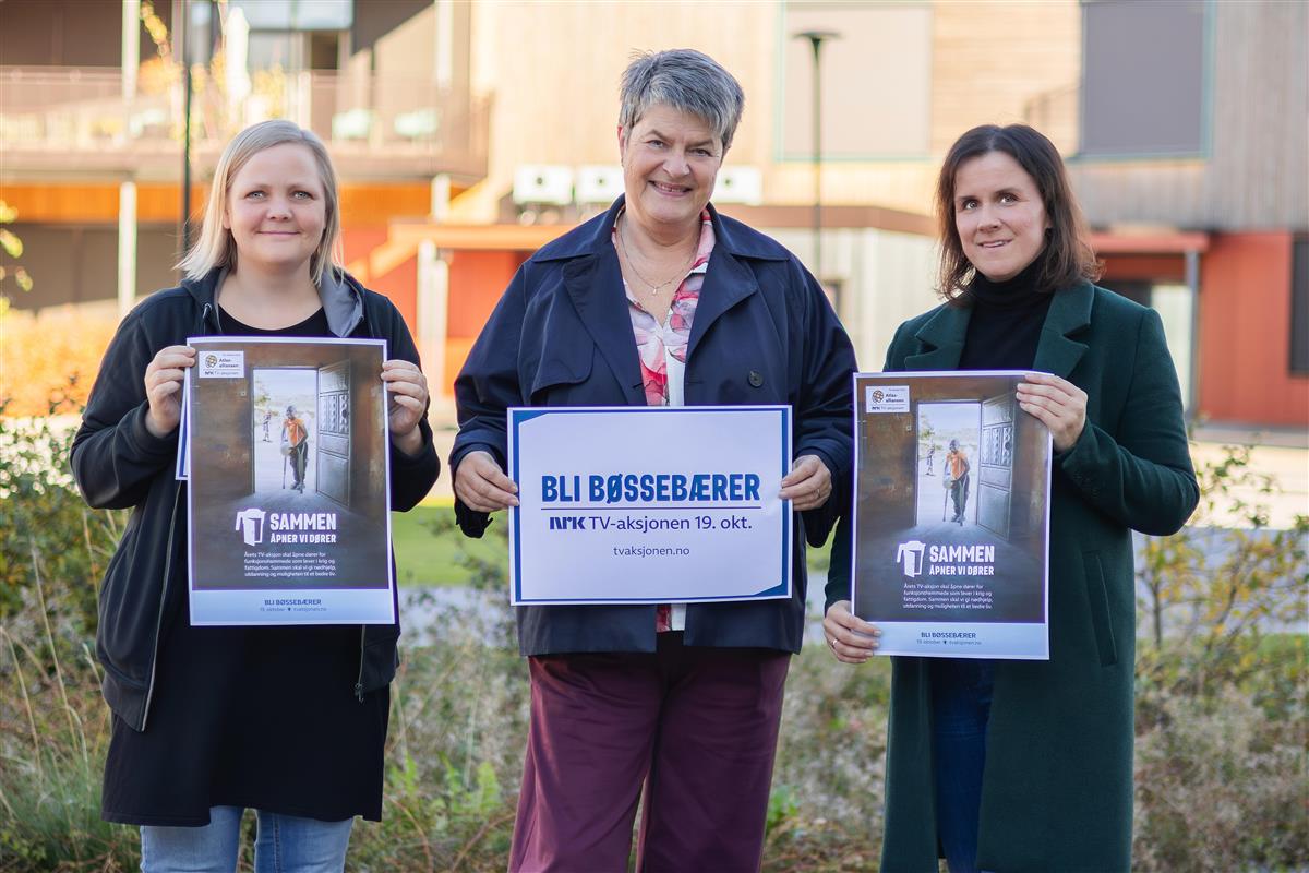 Alle kommunar i landet oppnemner ein eigen kommunekomité som har ansvar for å gjennomføre TV-aksjonen lokalt. Kommunekomiteen i Vestnes er (frå venstre) Birgit Vollen, konstituert dagleg leiar ved Vestnes frivilligsentral, Ordførar Randi Bergundhaugen og Ingrid Skjegstad, kulturrådgivar i Vestnes kommune.TV-aksjonen i år går til Atlas-alliansen og skal bidra til eit betre liv for menneske med funksjonsnedsettingar i nokre av verdas mest utsette område.