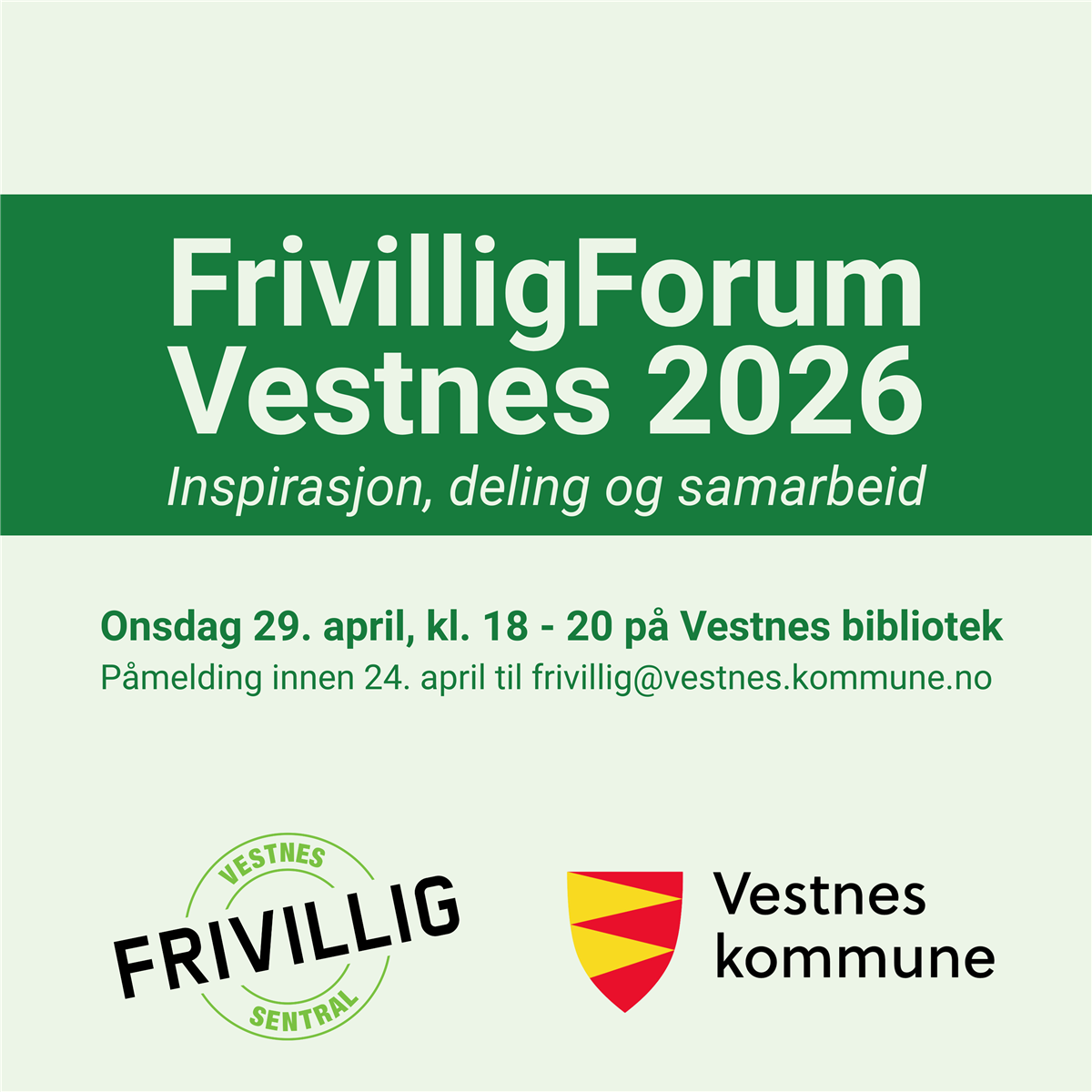 Påmelding skjer til frivilligsentralen@vestnes.kommune.no innan 24. april.